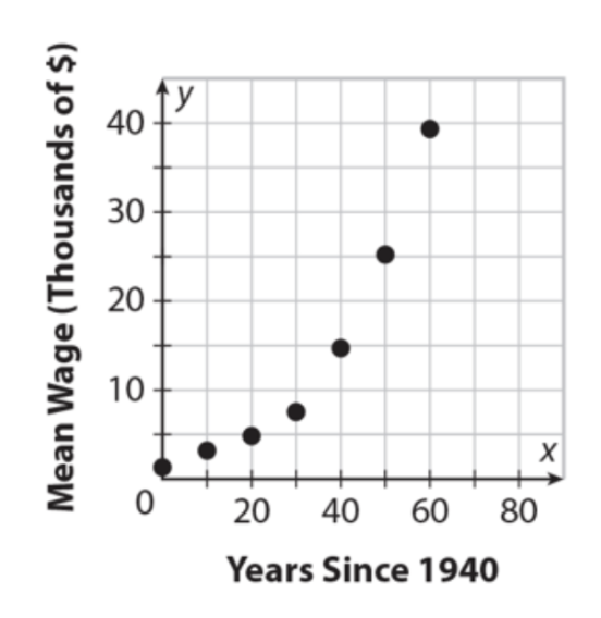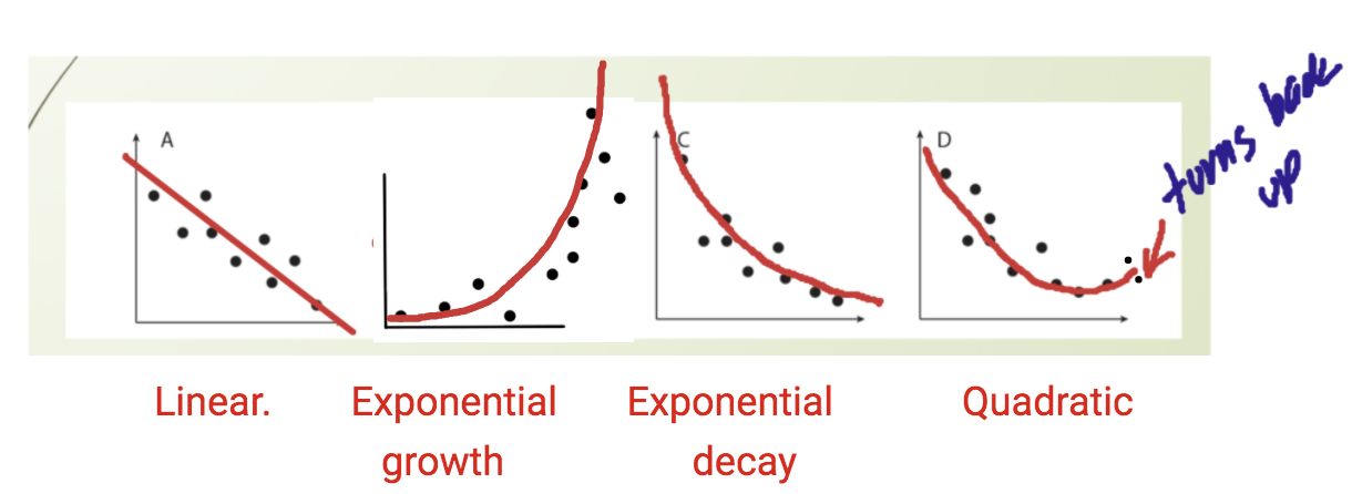 Sometimes, we have certain data points from real-life situations and they don't fit on a line or curve perfectly. We can look at the points and decide which type of function will "fit" best if we had to draw a line/curve through all of the points.