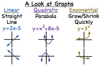 If we have a graph of a function, it is easy to tell if it is linear, quadratic or exponential. Practice a few!