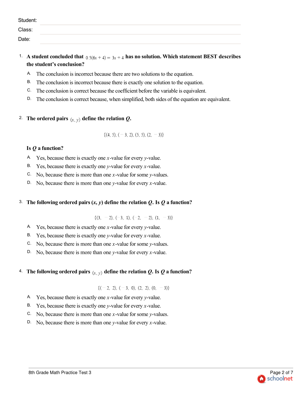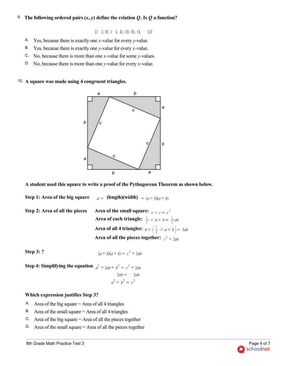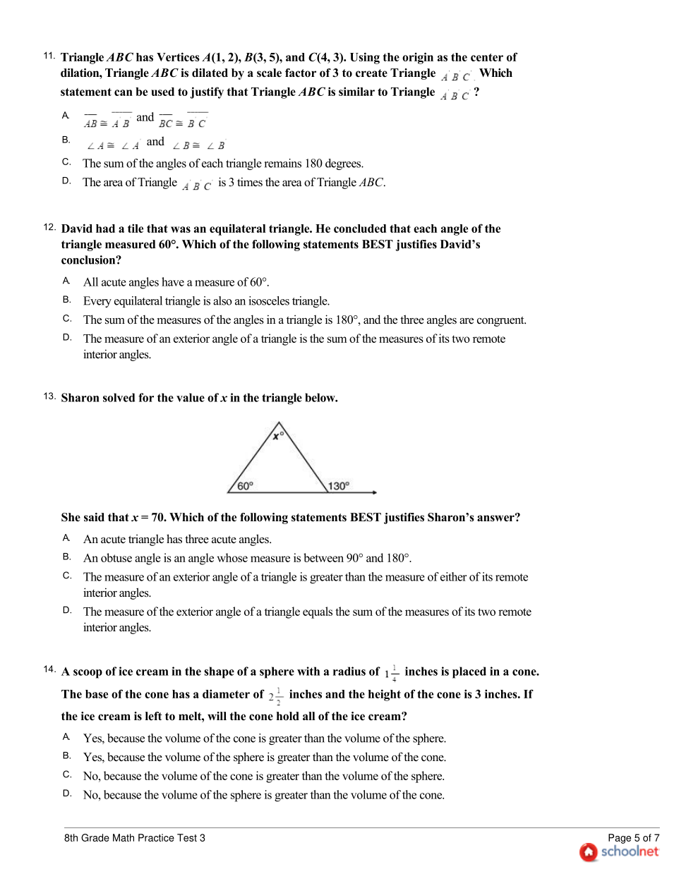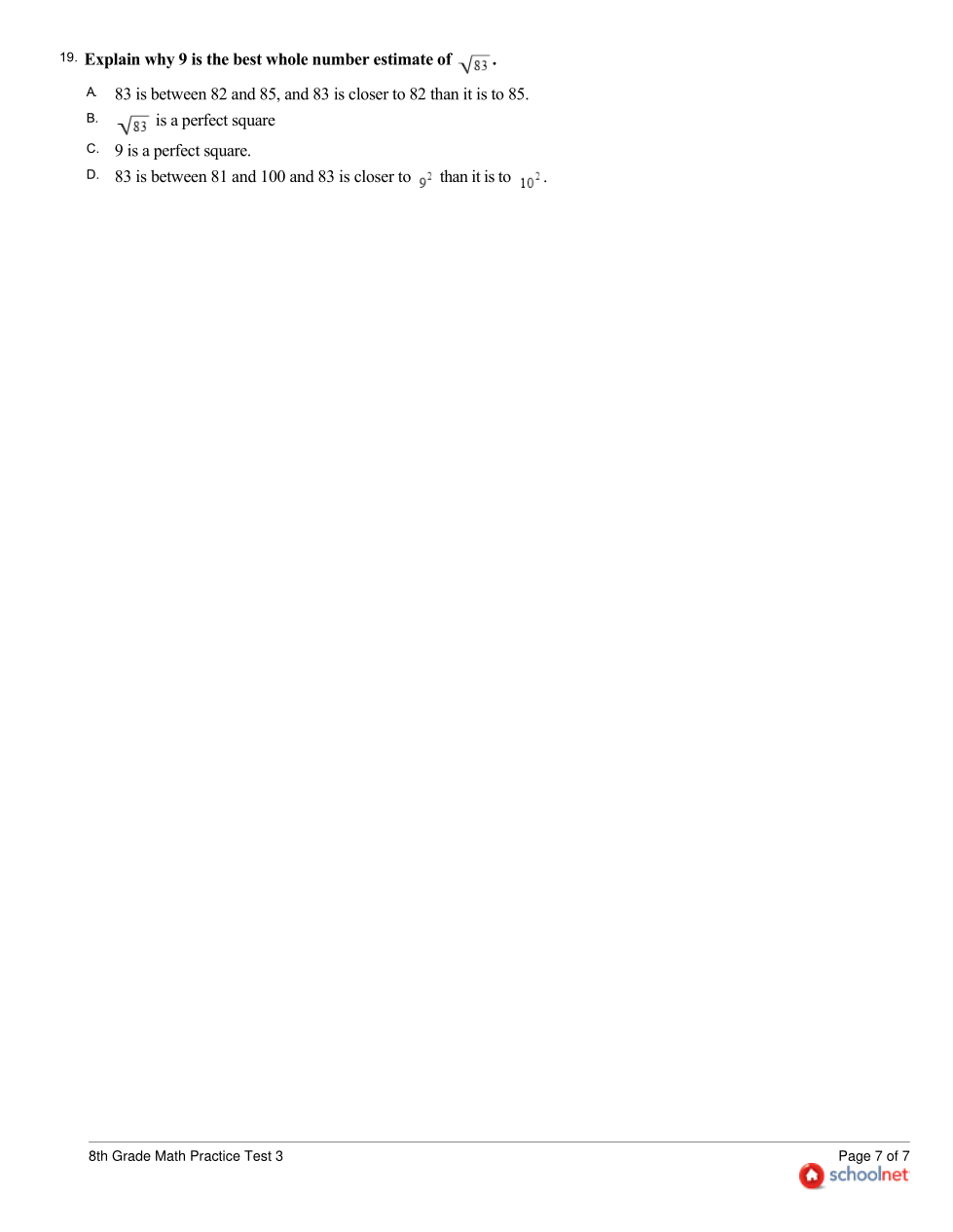 8th Grade SchoolNet Practice Test 3