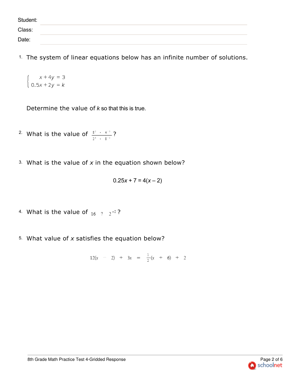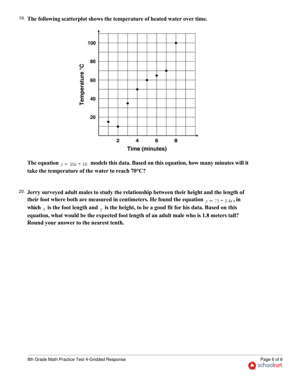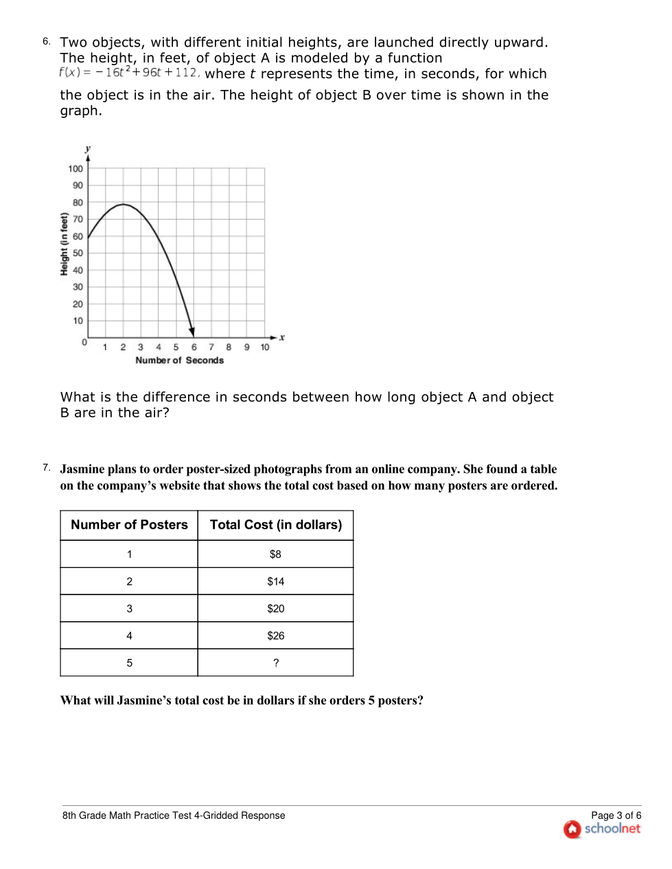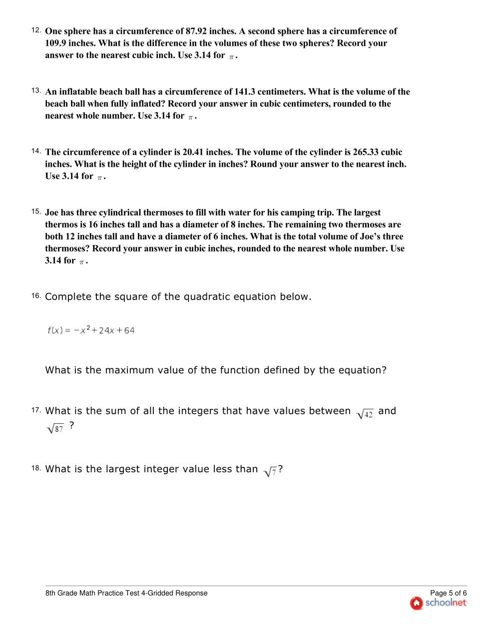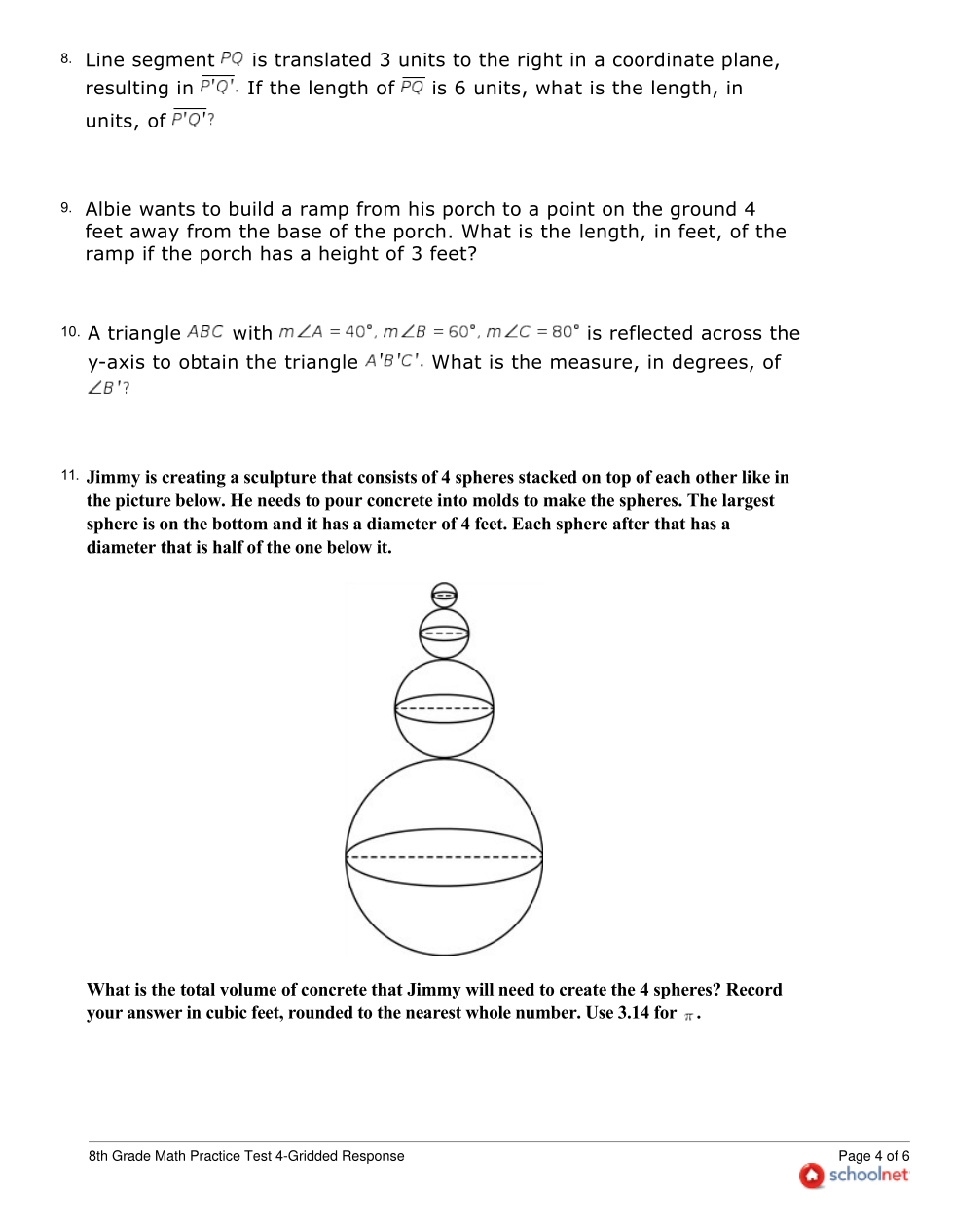 8th Grade SchoolNet Practice Test 4-Gridded Response