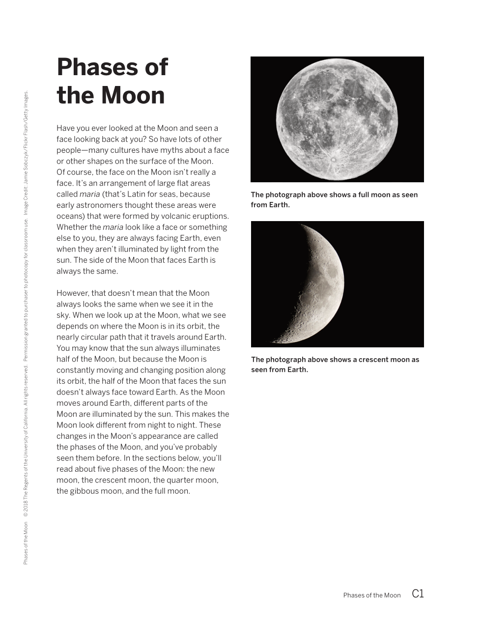 What causes patterns of different moon phases each night?CFS:- Accurately identifies the light on the moon based on its position