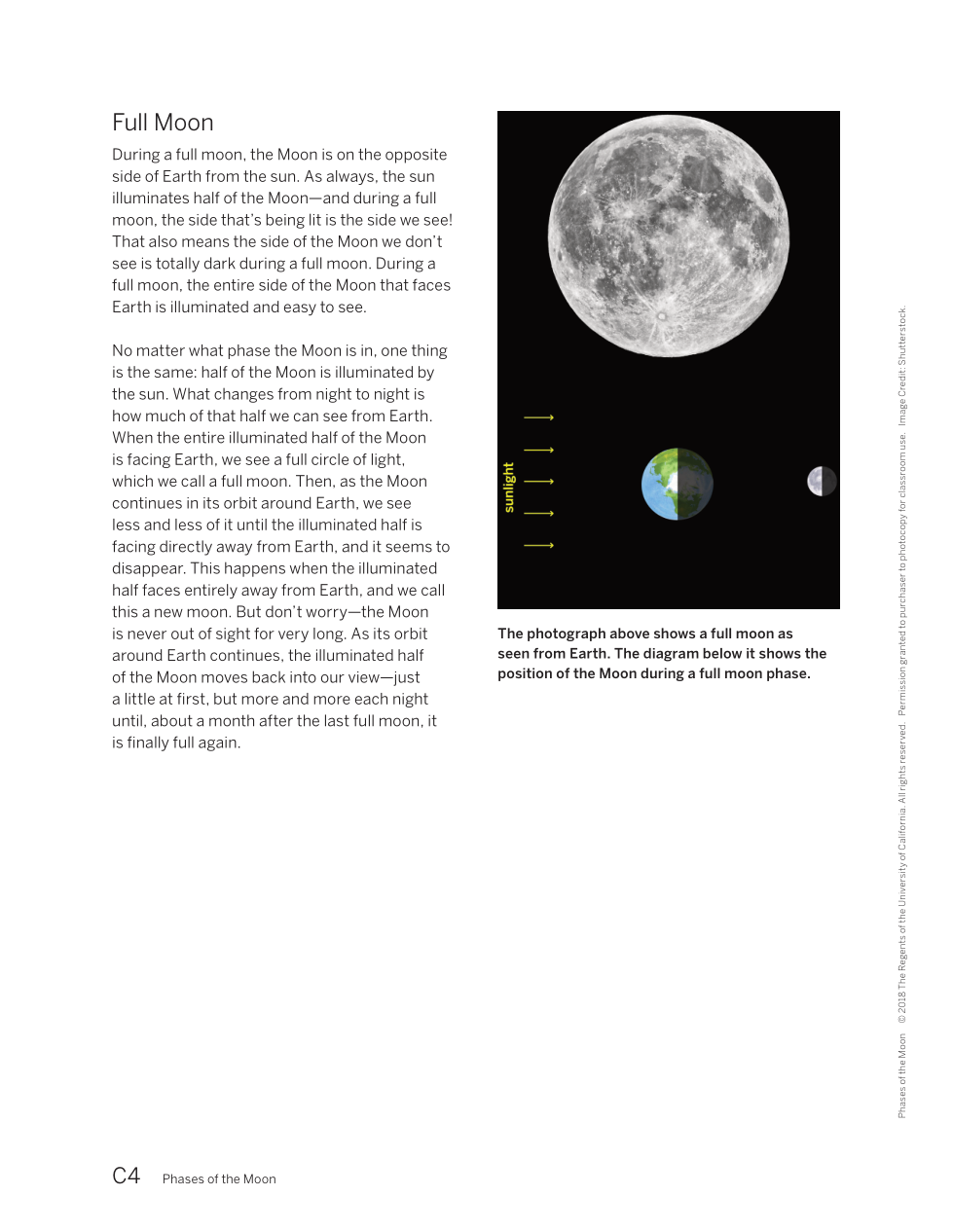 Describe the position of the Sun, Earth, and Moon when you would see a Full Moon from Earth?