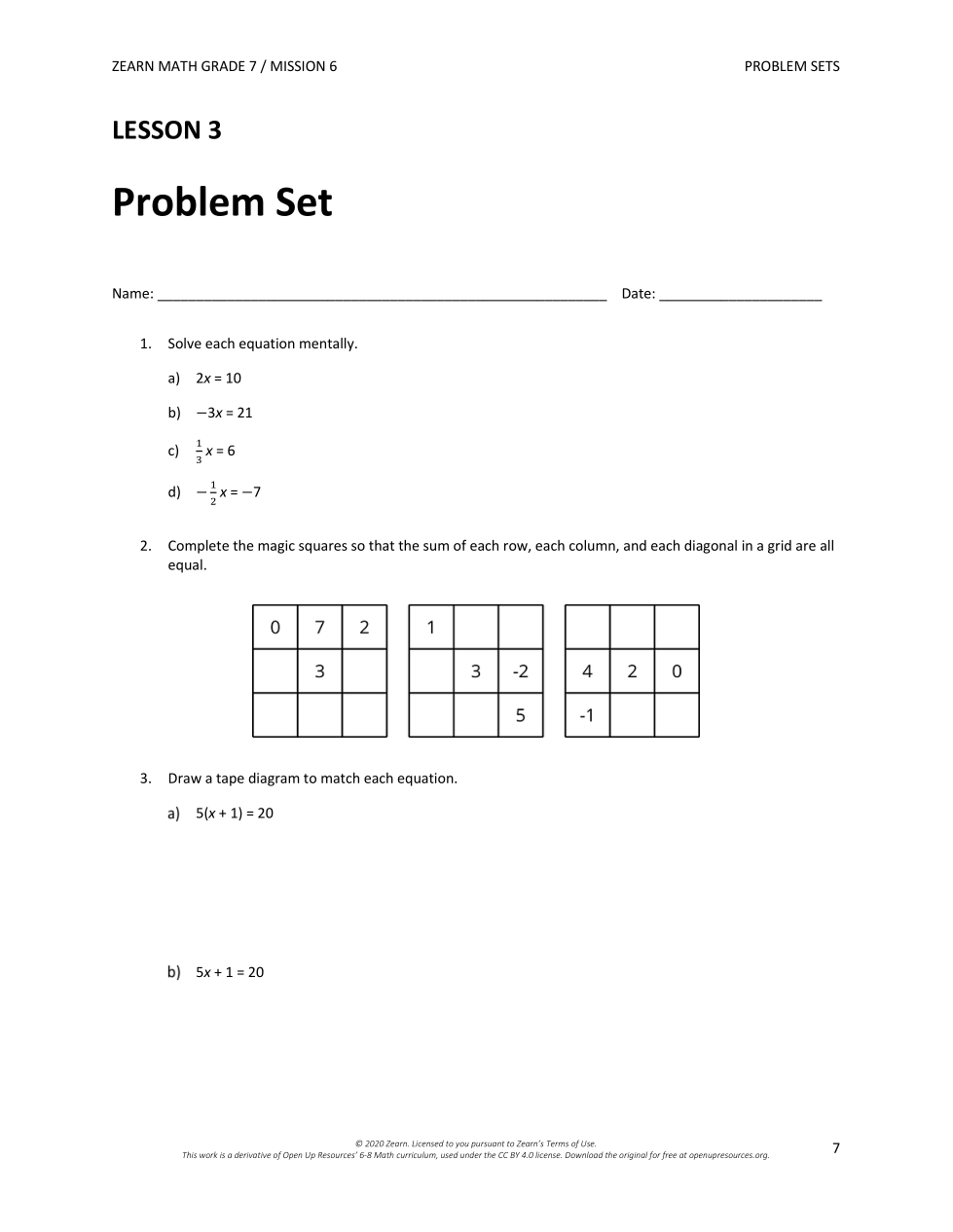2. Complete the magic squares so that the sum of each row, each column, and each diagonal in a grid are all equal.