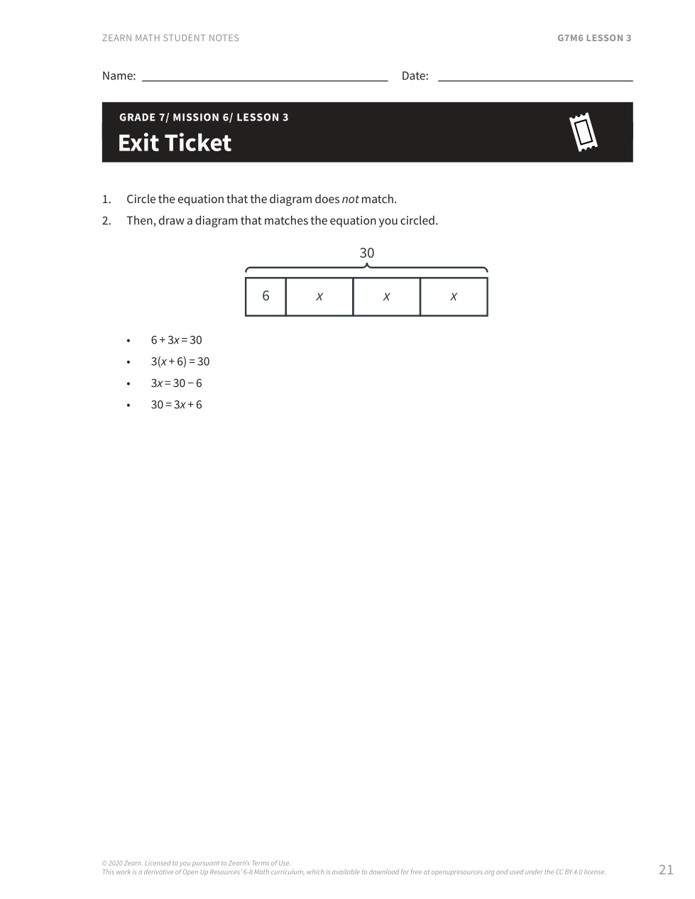 EXIT TICKET1. Which equation does the diagram NOT match?