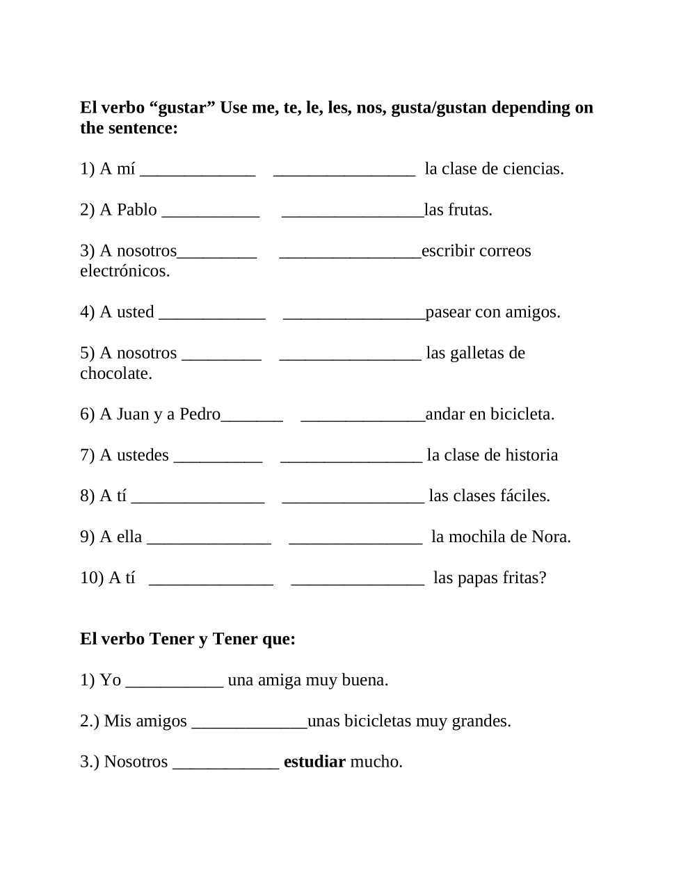 3/21/22: WARM-UP: Verbos ser, gustar, tener y tener que: