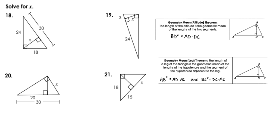 Directions: Solve for x. Round all answers to the nearest tenth. Do 2 of the following 4.