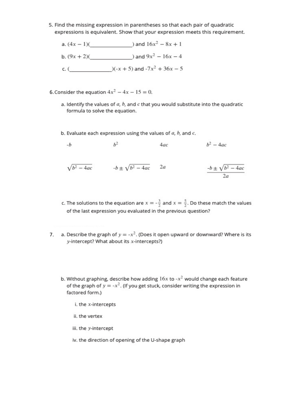 What is b2 - 4ac for 4x2 - 4x - 15 = 0?