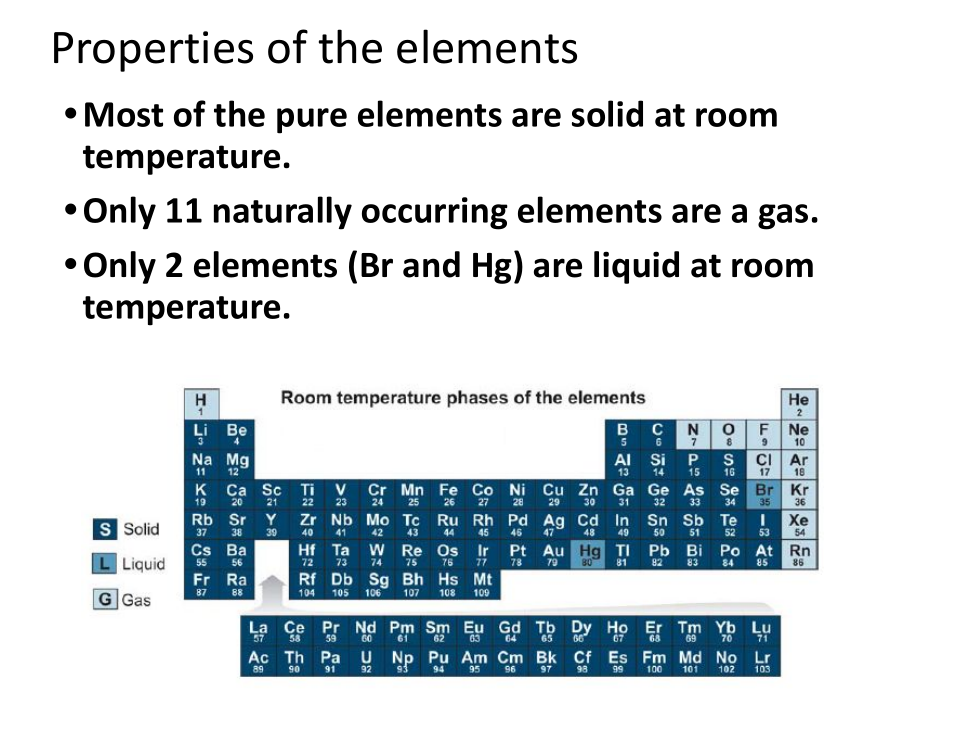 Most of the pure elements are solid at room temperature.