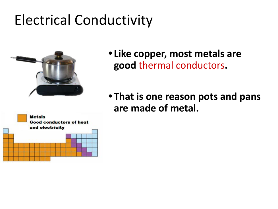 Pots and pans are made of metal because they are good thermal conductors.