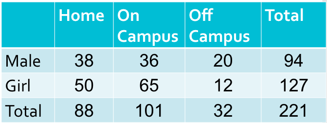 Of all the students surveyed, what is the relative frequency that the student was a male living on campus?