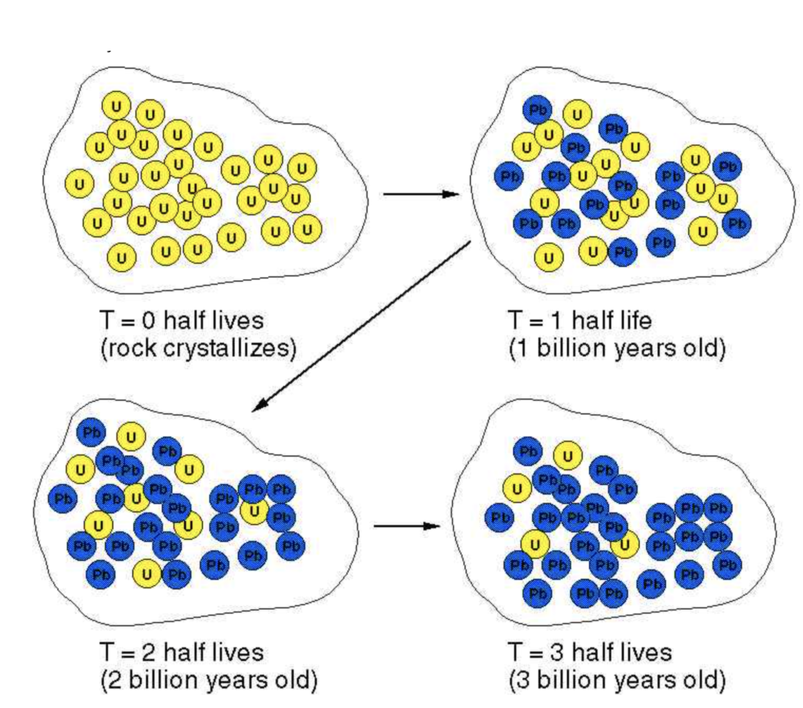 Uranium has a half life of 4.5 billion years. A scientist dated a rock sample to be 18 billion years old. How many half lives have passed?