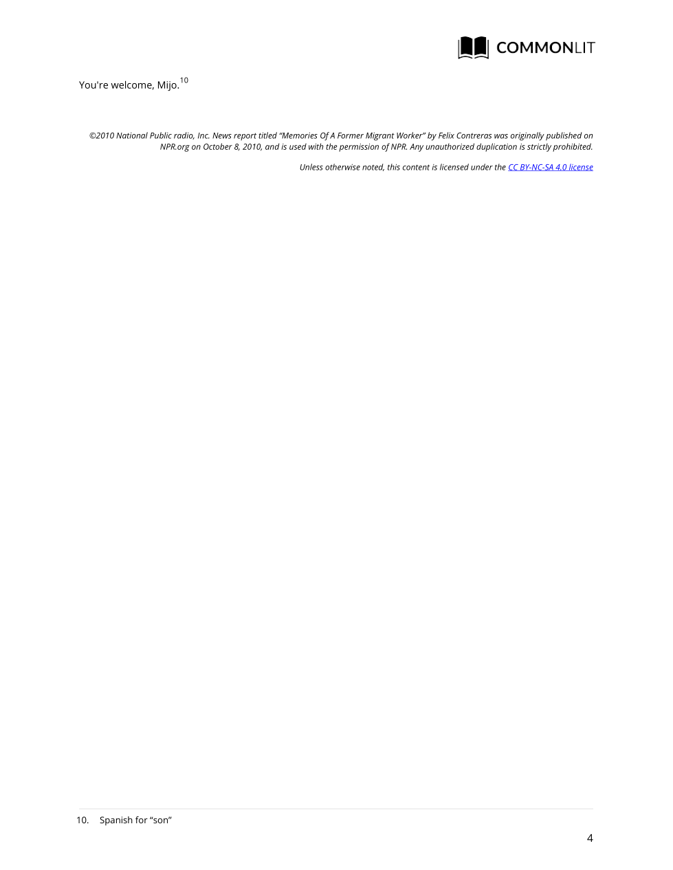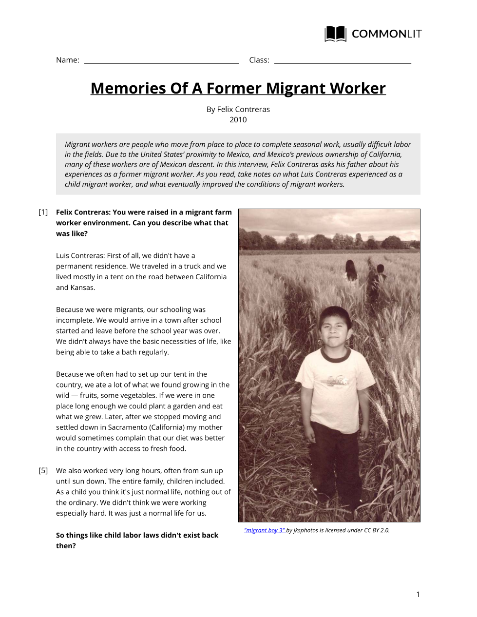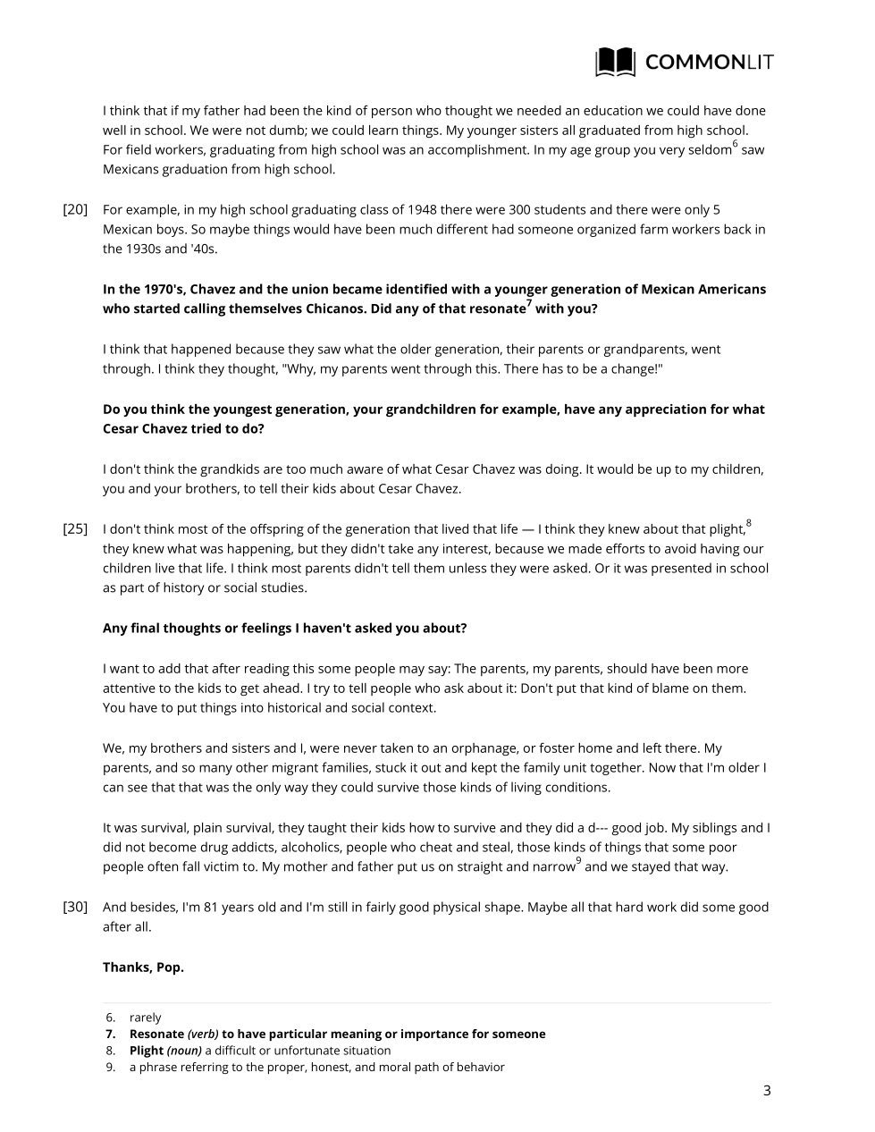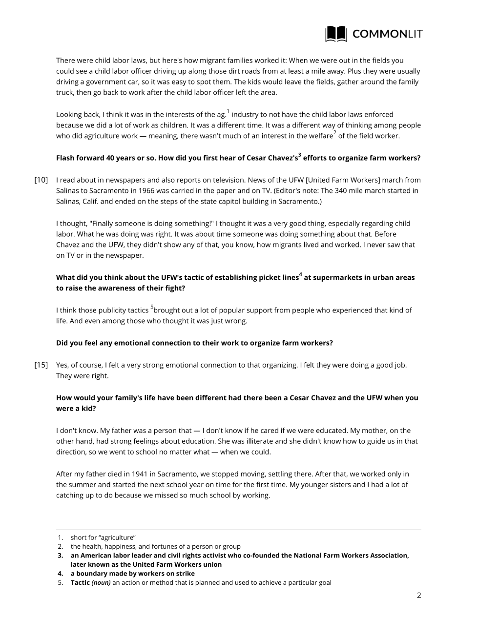 Pertaining to child labor laws The Author's Father says, "It was a different time. It was a different way of thinking among people who did agriculture work - meaning, there wasn't much of an interest in the welfare of the field worker"