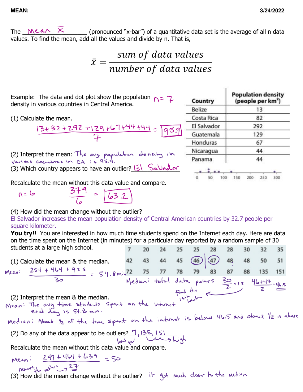 Remove the outliers you selected in number 13 from the data set and recalculate the mean.