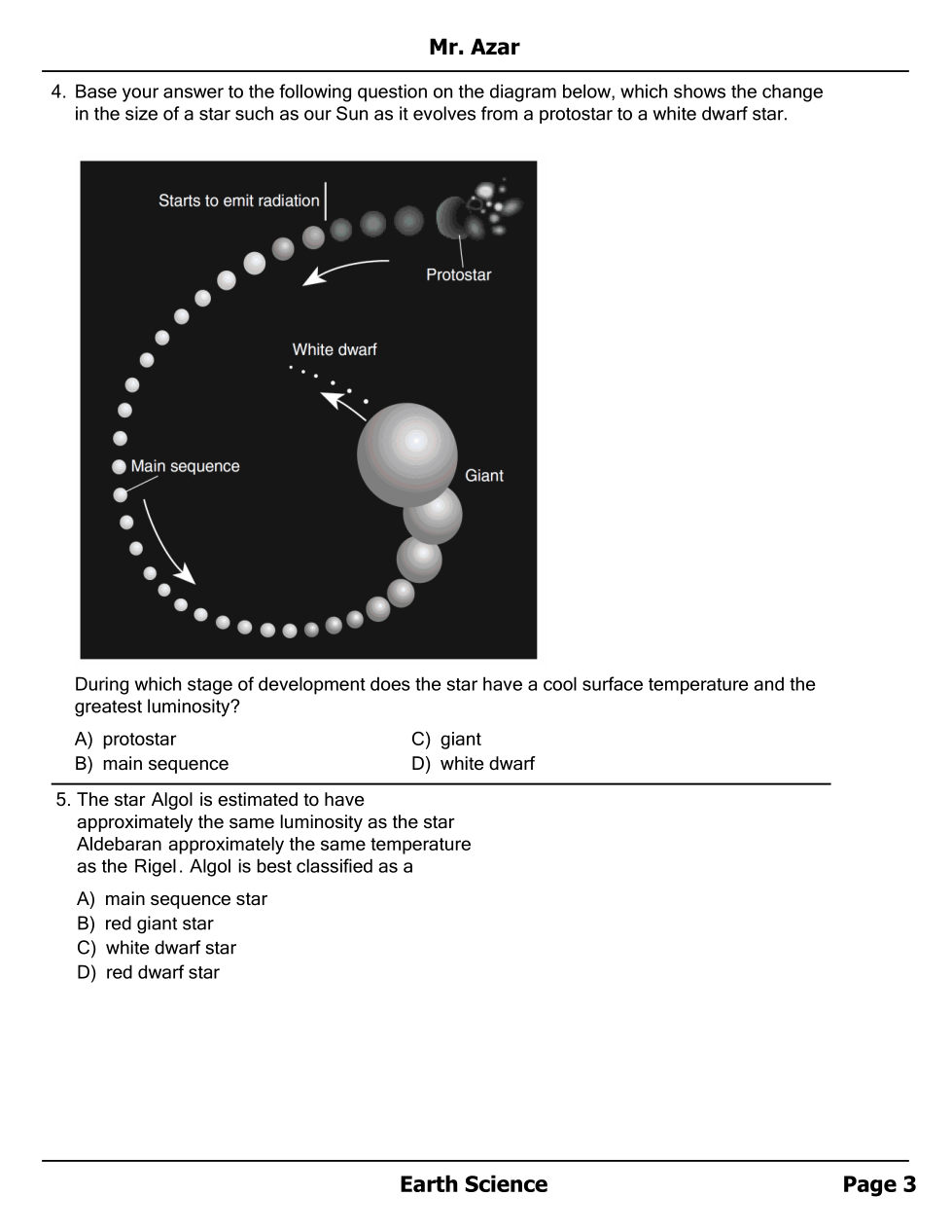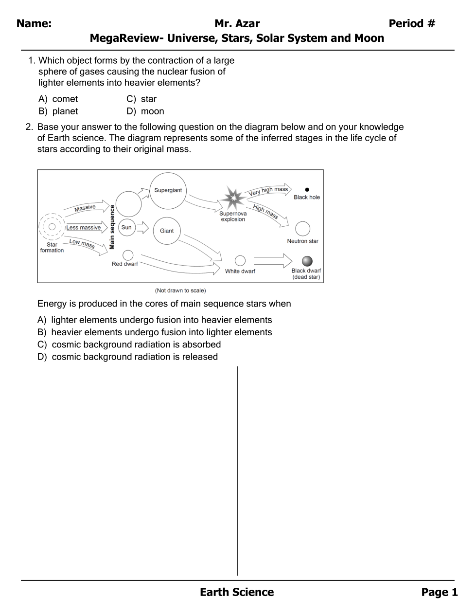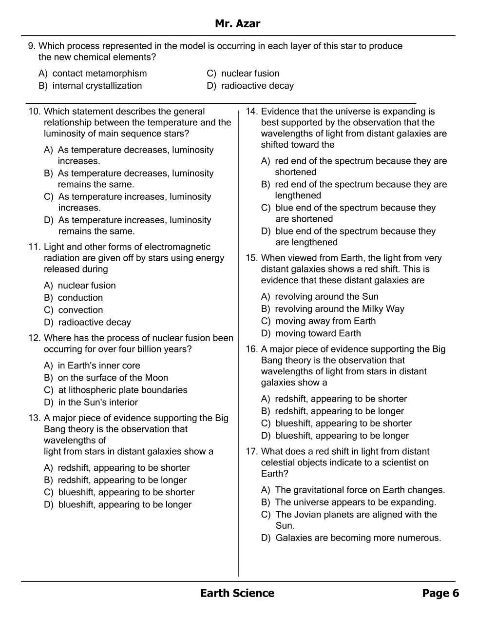 Stars and Redshift - 1st half Unit Test Review