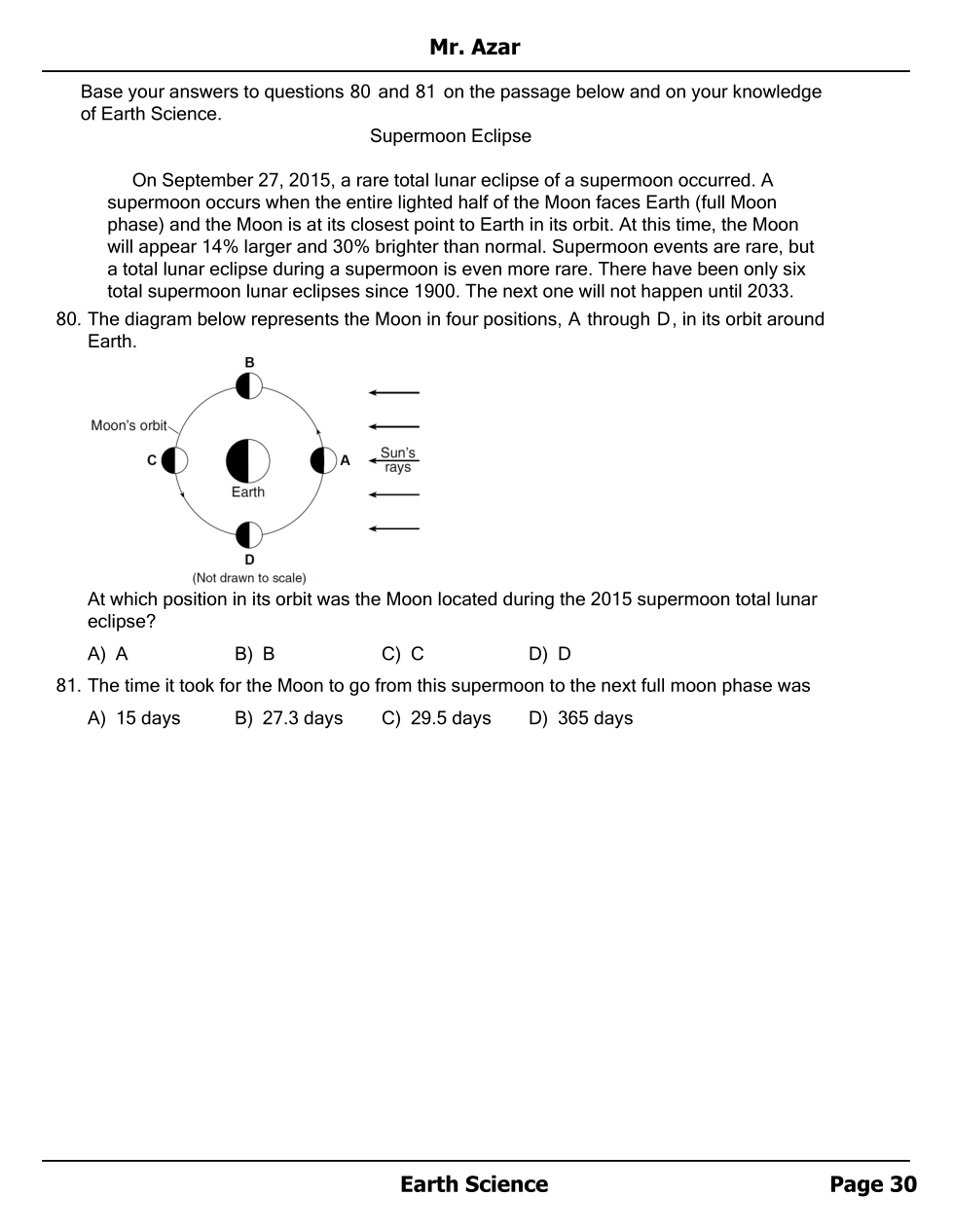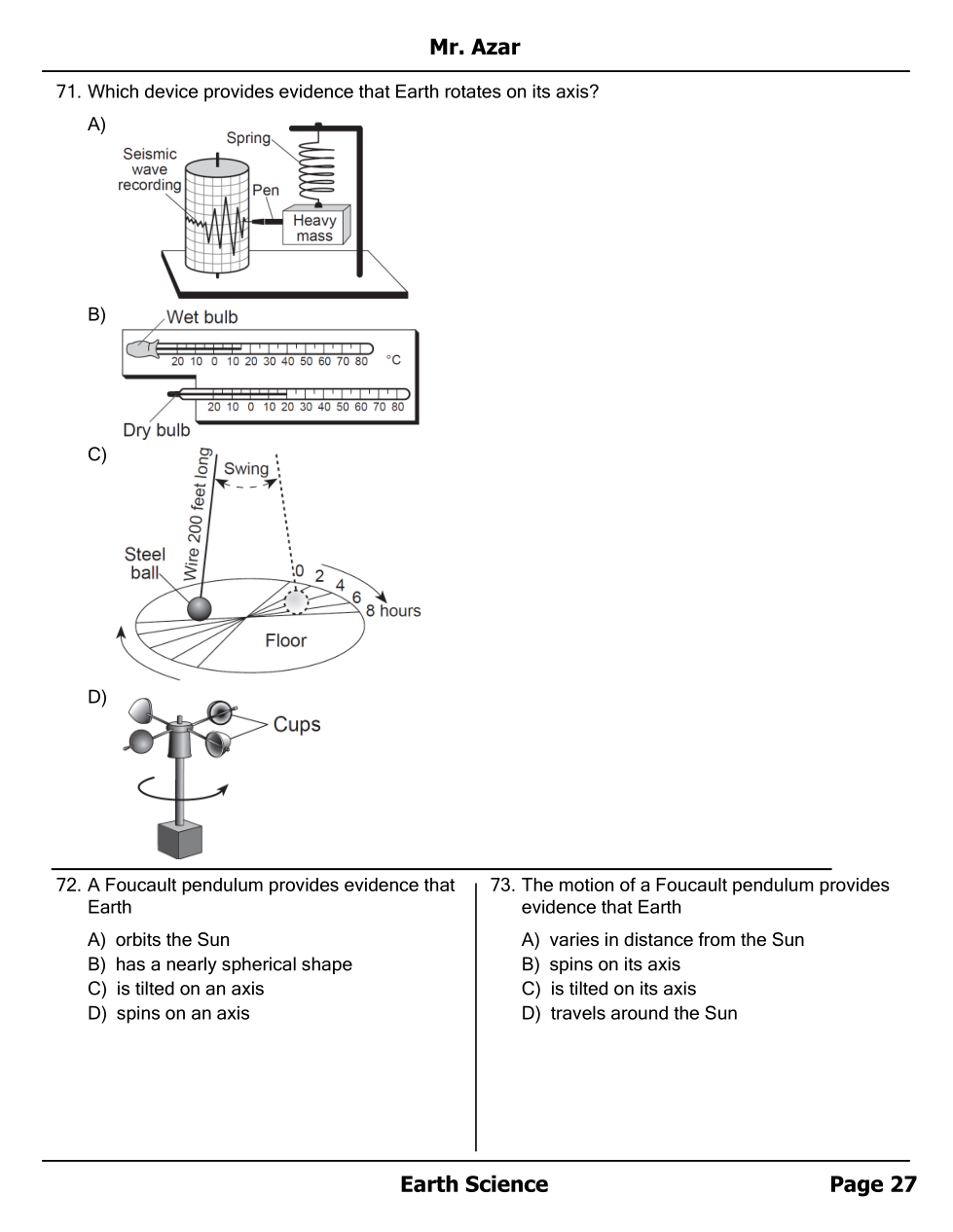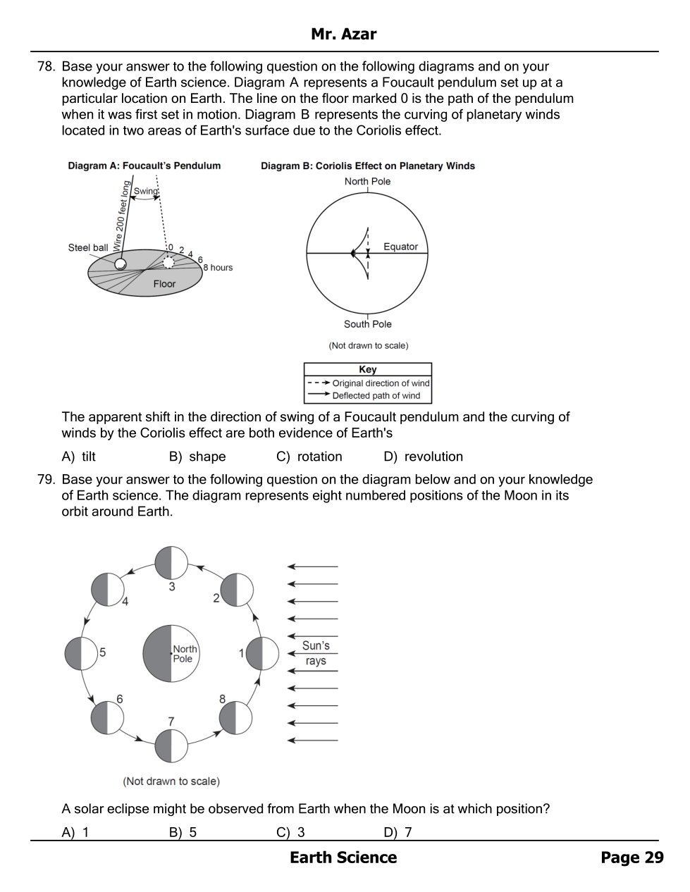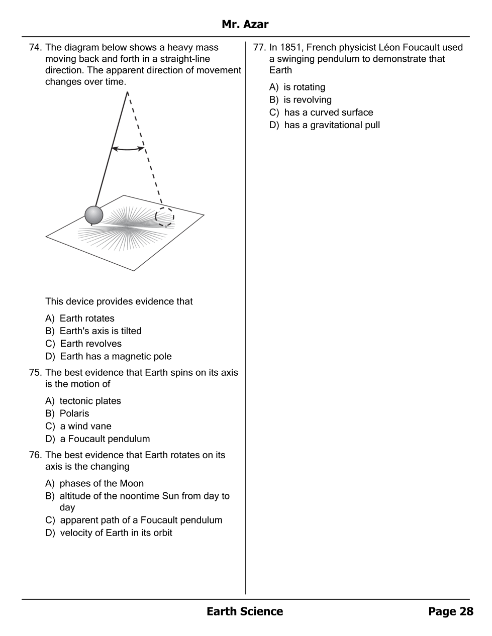Foucault Pendulum and Moon - 1st half Unit Test Review Homework