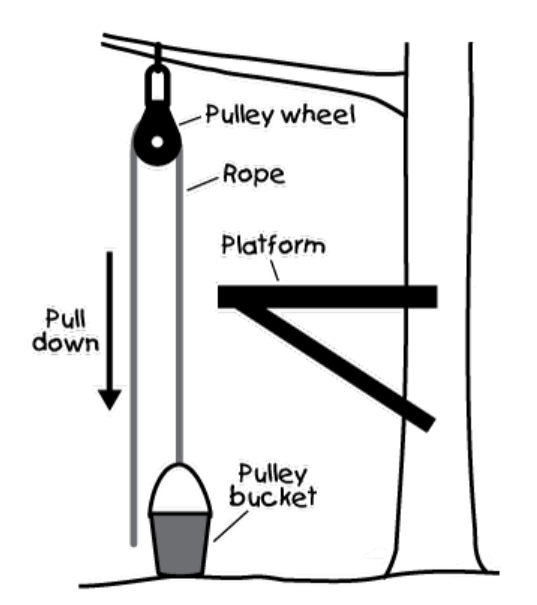 The diagram below shows a student’s design for a pulley system used to lift objects up to a platform.