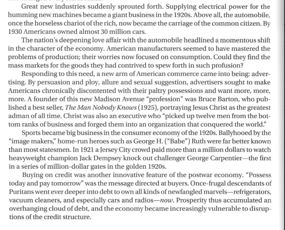 Well done! Now you might be wondering how Americans were convinced to buy so many goods, which is largely a result of the advertisments that emerged in this time period. Take a look at some examples here.