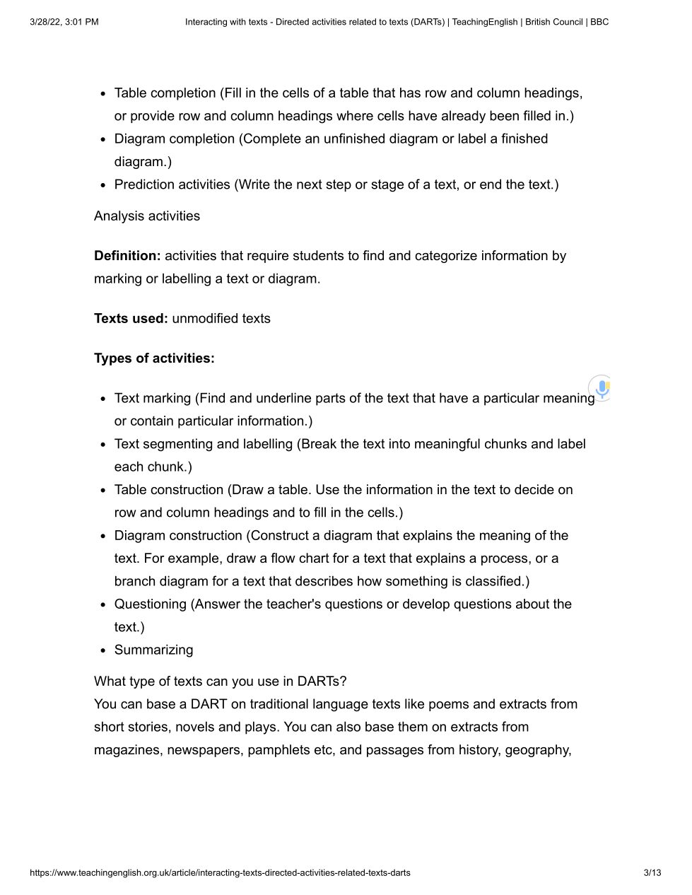 If an activity requires students to construct a diagram that presents the meaning of a text, it is an Analysis activity.