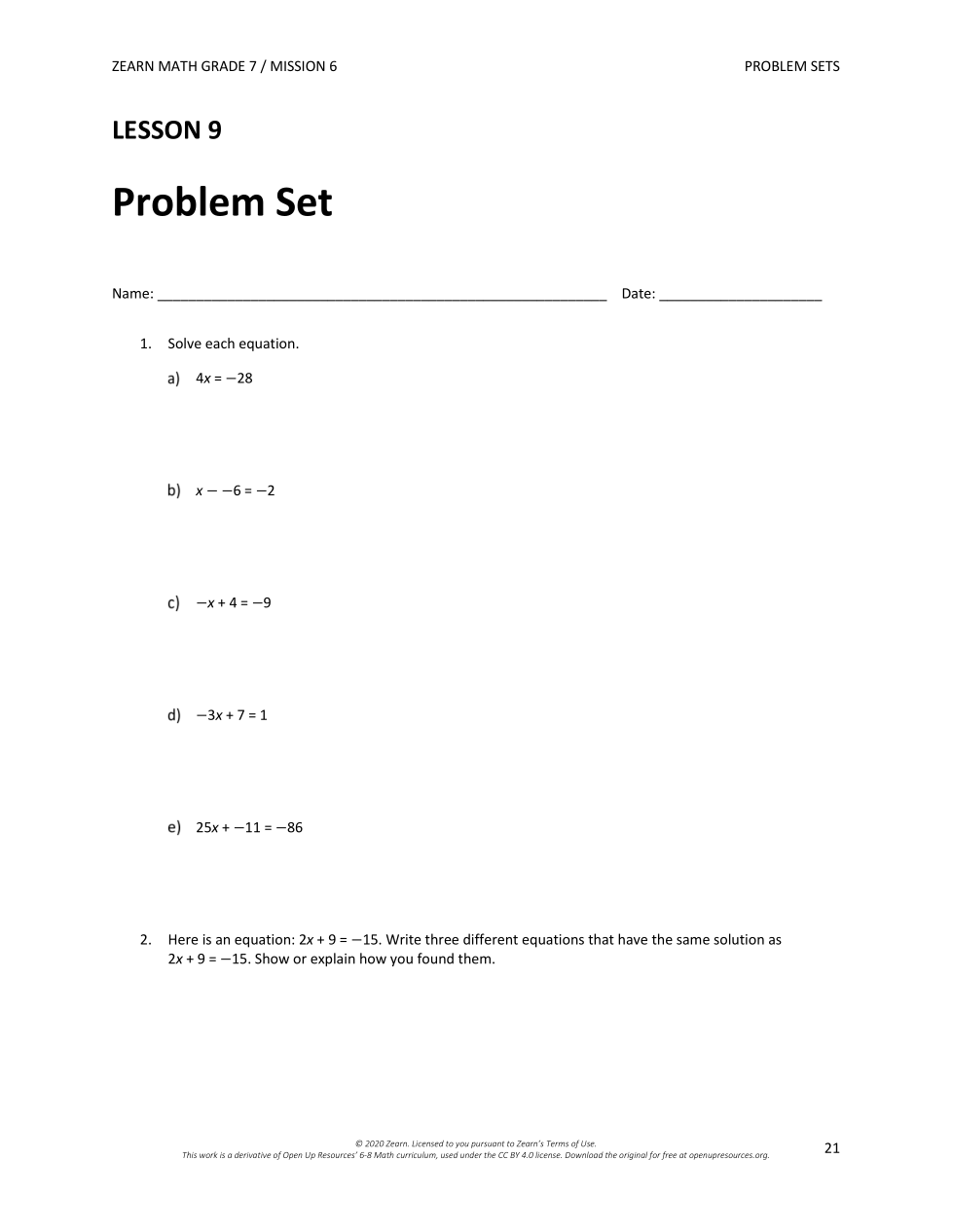 2. Here is an equation: 2x + 9 = -15. Write three different equations that have the same solution as 2x + 9 = -15