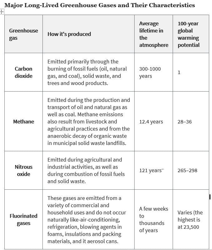 Which greenhouse gas has the biggest impact on global warming potential? (look at the last column)