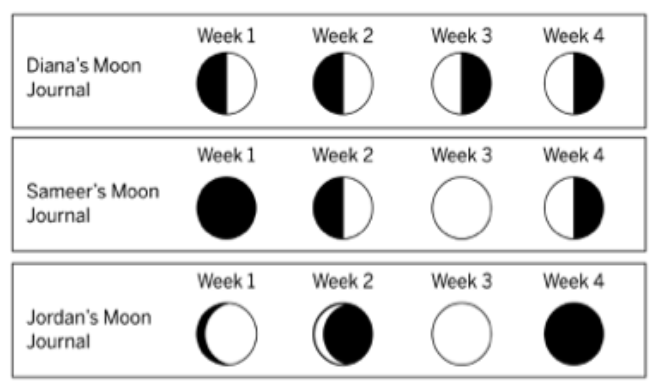 The teacher would like you to identify which student or students recorded a series of moon phases that could not have been observed in a single month.