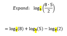 Therefore, we can expand log(8â‹…2) to log(8)+log(2) without changing the value of the logarithm.