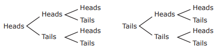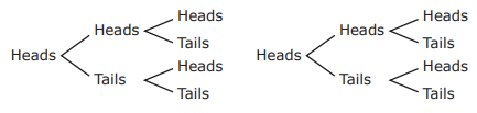 Jack tossed a coin three times. Which tree diagram shows all the possible outcomes of the coin landing heads up or tails up?