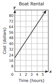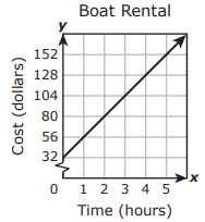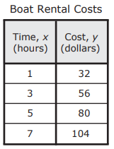 The table shows the relationship between y, the cost to rent a boat, and x, the amount of time the boat is rented.