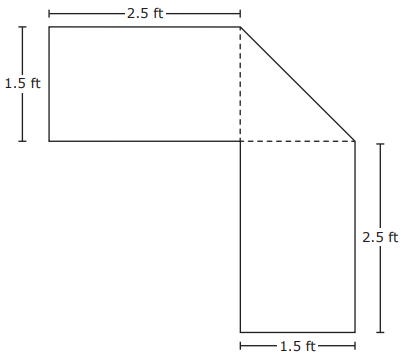 The top surface of a desk is composed of 2 rectangles and a triangle. Some side lengths of the top surface of the desk are shown.