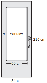 The diagram shows a door that has a window in it. The front faces of the door and the window are similar rectangles that have the dimensions shown.