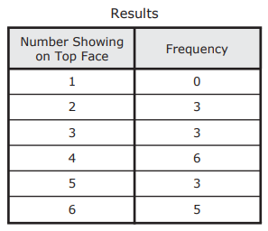 A number cube with faces labeled from 1 to 6 was rolled 20 times. Each time the number cube was rolled, the number showing on the top face was recorded. The table shows the results.