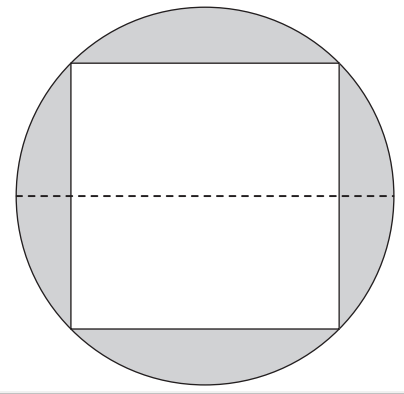 The figure shown was created by placing the vertices of a square on the circle. Use the ruler provided to measure the dimensions of the square and the circle to the nearest centimeter.
