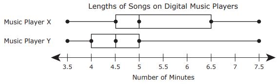 The box plots show the lengths of the songs on two digital music players in minutes.