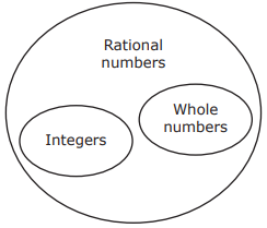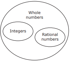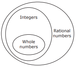 Which diagram best represents the relationship among integers, rational numbers, and whole numbers?