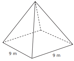 Some of the dimensions of a square pyramid are shown in the diagram. The height of the square pyramid is 7.5 meters.