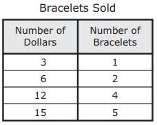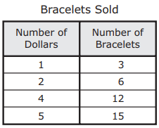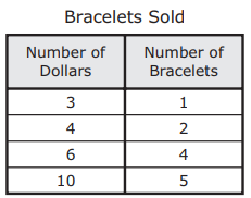 Which table represents the numbers of bracelets that would be sold for different numbers of dollars?