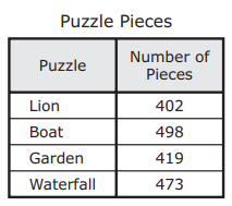 The table shows the numbers of puzzle pieces in four puzzles. Derek put together the two puzzles that had the greatest numbers of pieces.