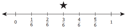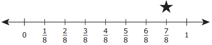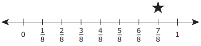 Eddie marked the fraction 3/4 with a star on the number line shown.
