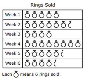 The graph shows the number of rings Mrs. Adams sold during six weeks at her