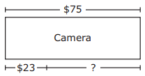 Timothy wants to buy a camera that costs $75. He has saved $23, as shown in the model.