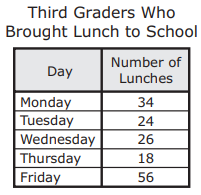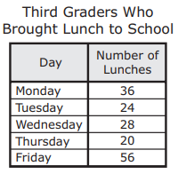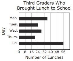 The bar graph shows the number of third graders who brought lunch to school each day last week.