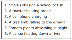 A student made a list of activities that involve energy.