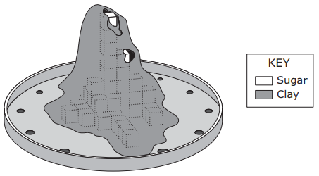 Students constructed this model of a hill by covering sugar cubes with clay. The students placed the model in a large pan and poured hot water over it every day for a week.