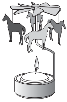 An old-fashioned metal toy is shown below. When the candle is lit, the carousel of horses begins to turn.