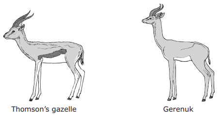 Many types of grazing animals live in Africa. The pictures show two of these animals that have about the same mass and height at the shoulder.