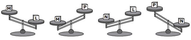 A student was asked to compare the masses of four blocks that were all the same size but made of different materials. The student used a balance to compare the masses of two blocks at a time. The student repeated this process three more times with different pairs of blocks and recorded observations.