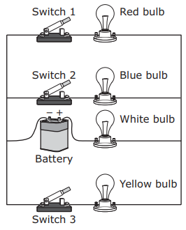 Which procedure will result in only the blue lightbulbs operating?