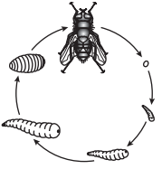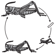 The diagrams below represent the life cycles of four different insects. Which of these insects goes through a complete metamorphosis?