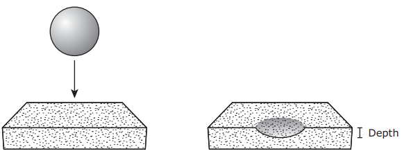 Students drop the same heavy ball onto identical blocks of soft clay from different heights. For each height they measure the depth of the dent the ball makes in the clay.