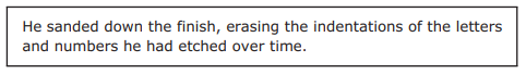 The repetition in lines 19 through 21 is used to emphasize that the desk —